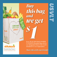 Shaw’s GIVE BACK WHERE IT COUNTS Reusable Bag Program to Benefit USVLT for the Entire Month of July!